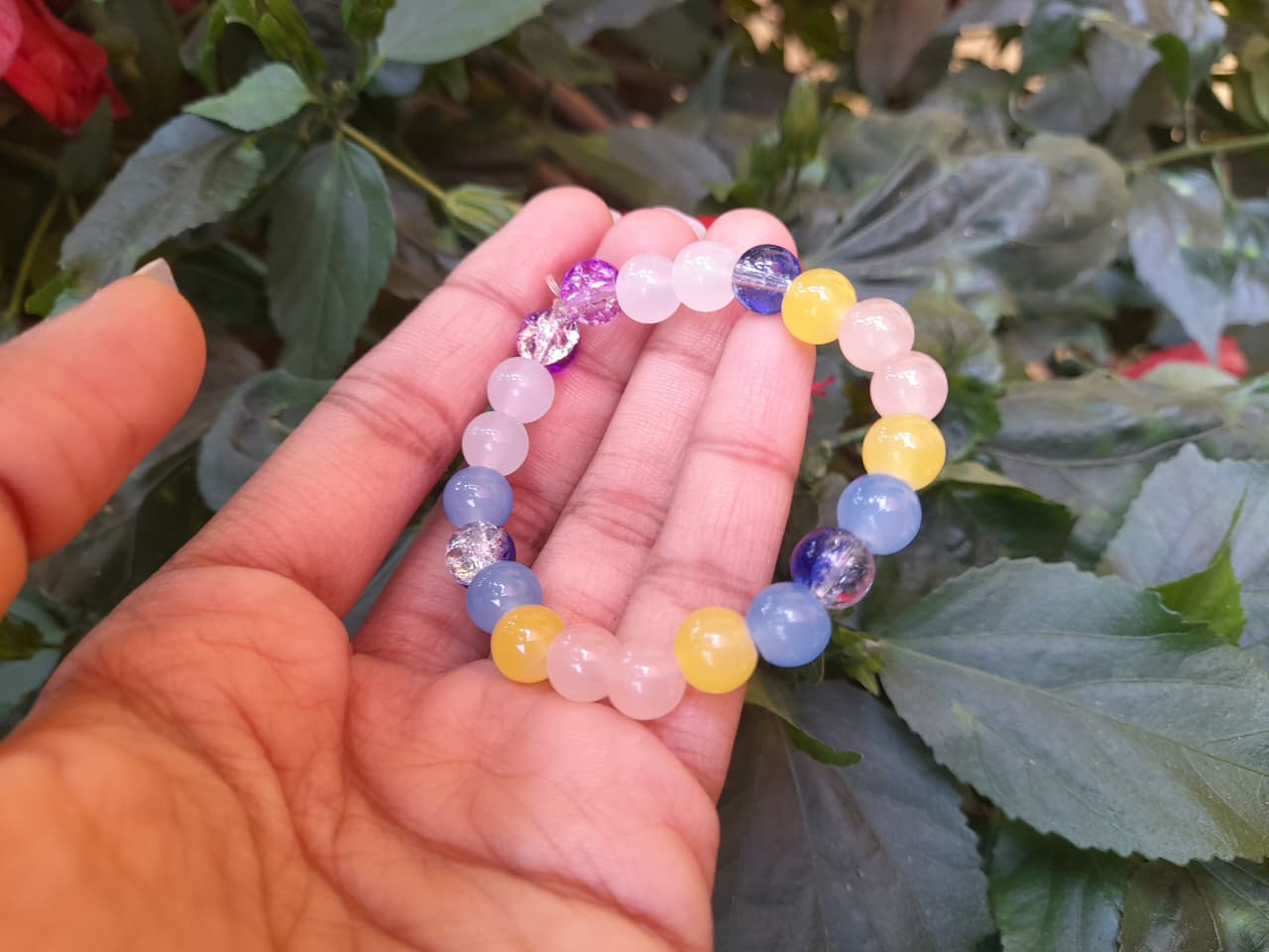 Handmade with glossy, Translucent and crackled beads in multiple colors, this bracelet is a celebration of vibrancy. Its lightweight design ensures comfort, while the colorful beads make it a standout accessory. Ideal for gifting or personal use, it adds sparkle and joy to any look. Perfect for fashion enthusiasts who love colorful jewelry.